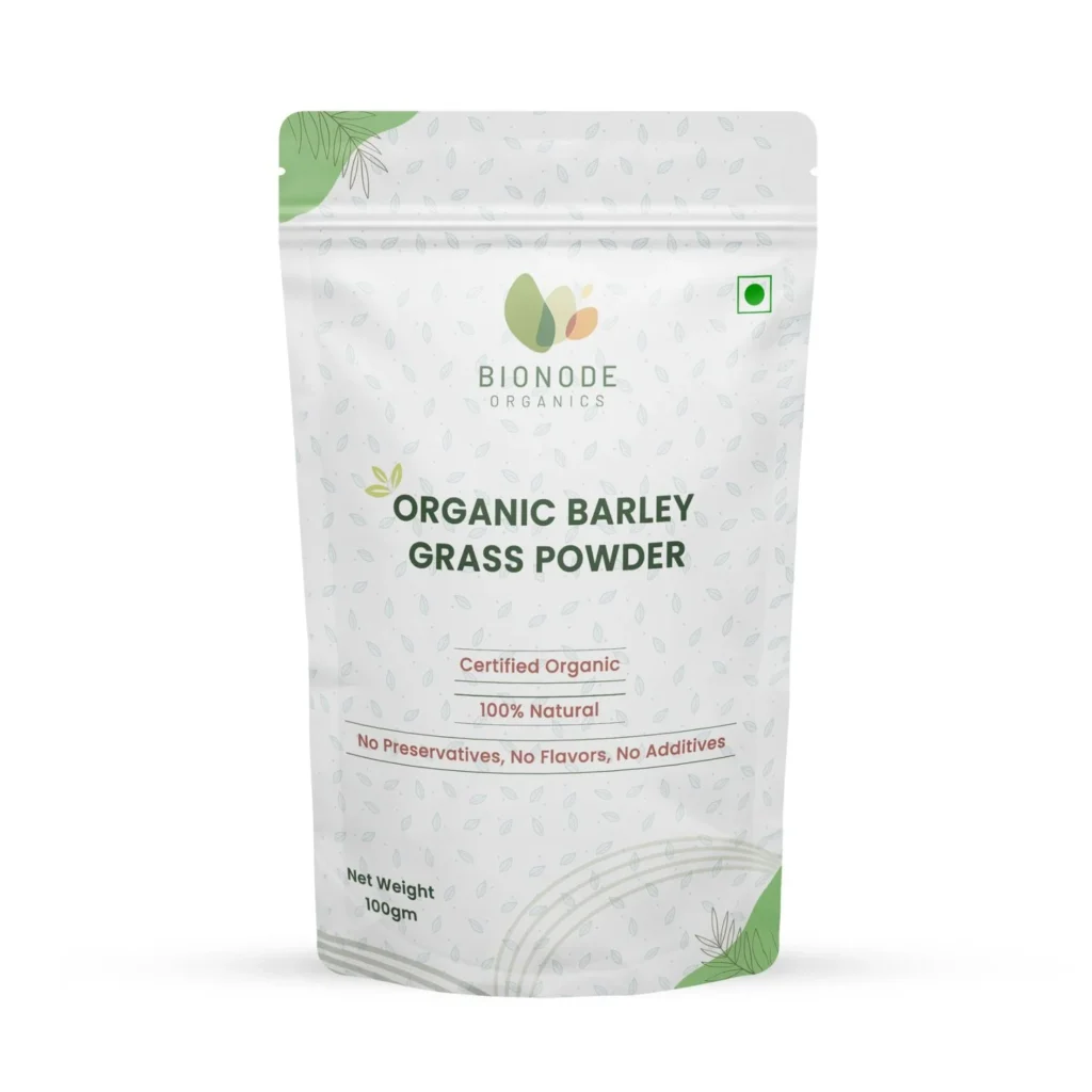 Bionode Organics Barley Grass Powder – Certified Organic – 100g is a pure, chemical-free, and lab-tested superfood designed to support detoxification, immunity, digestion, and daily wellness. (bionodeorganics.com)